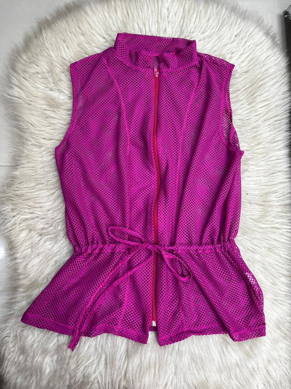 Blusa Colete Arrastão com Ziper Poliamida Cor Rosa Fuschia
