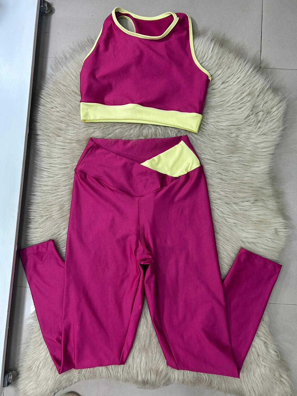 Conjunto Energia Legging+Top Cor Rosa Fuschia+Amarelo Manteiga