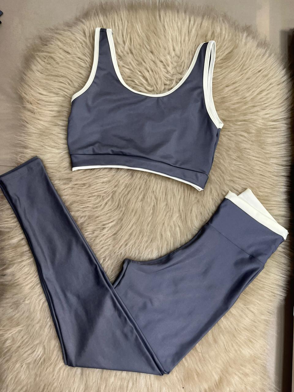 Conjunto Estilo Legging+Top Cor Cinza+Off