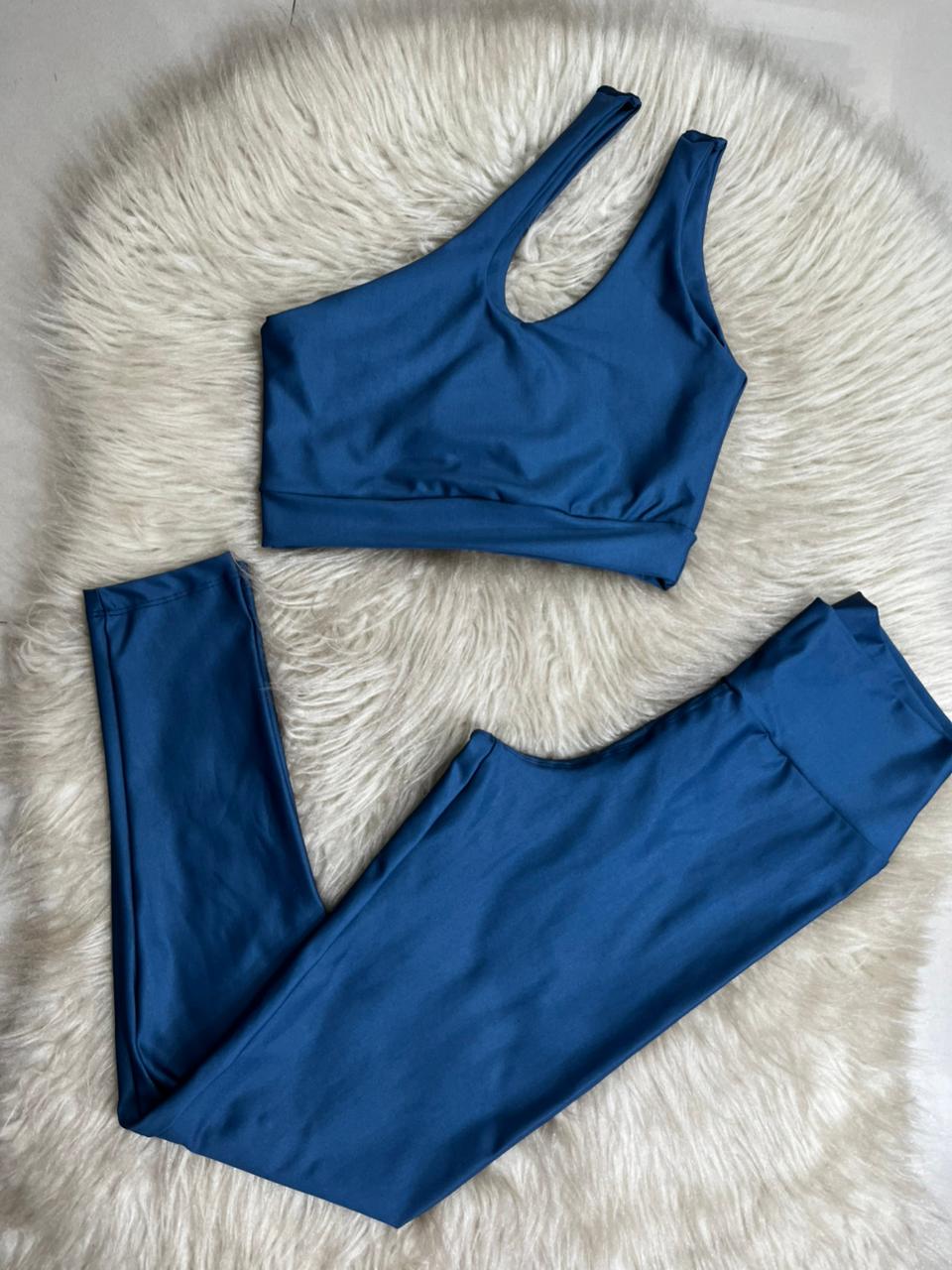 Conjunto Legging Básica + Top Nula Manga Cor Azul Petróleo