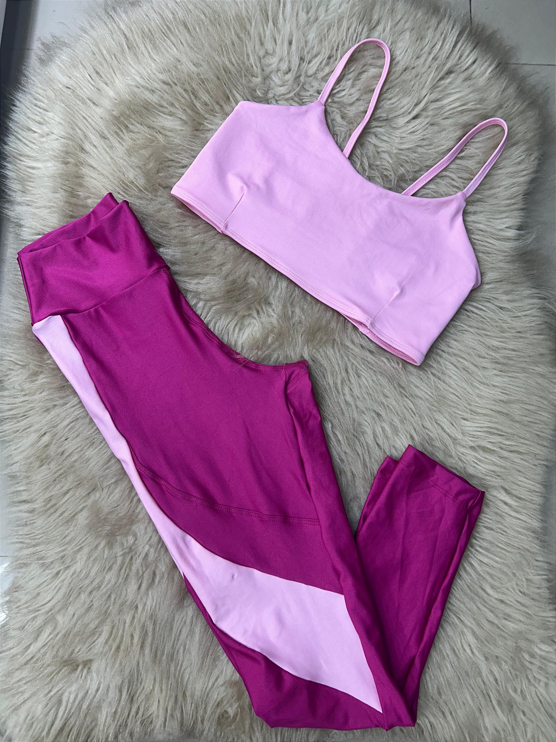 Conjunto Legging Lary+Top Tiras Cor Rosa Fuschia+Rosa BB
