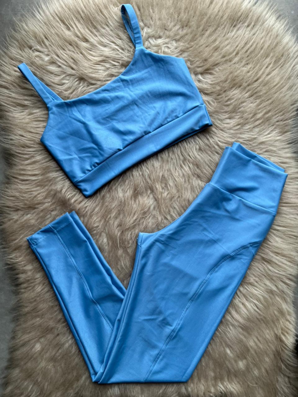 Conjunto Montaria Legging Canelado Poliamida+Top Cor Azul Celeste