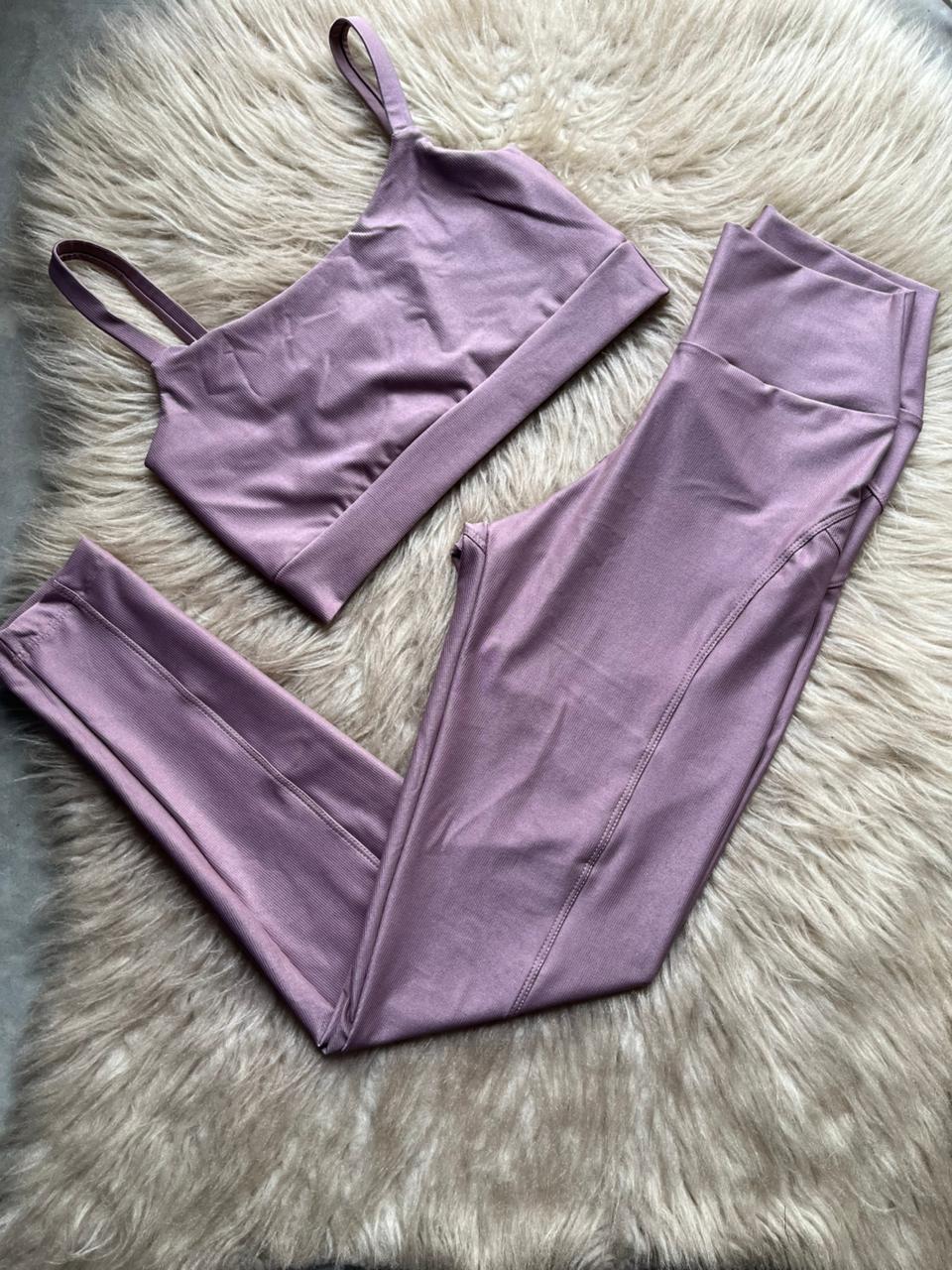 Conjunto Montaria Legging Canelado Poliamida+Top Cor Orquidea