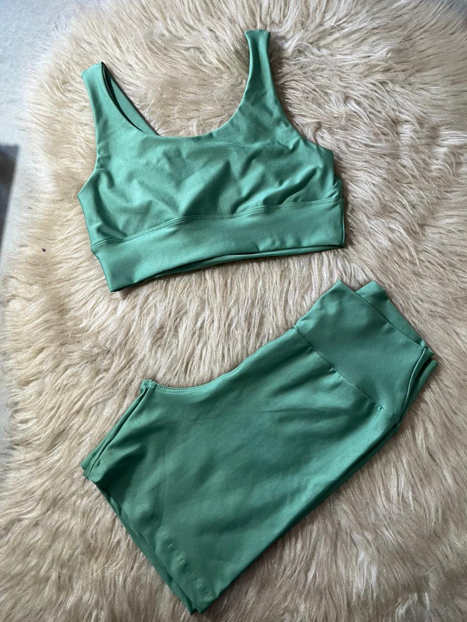 Conjunto Short Meia Coxa+ Top Clarisse Cor Verde Oliva