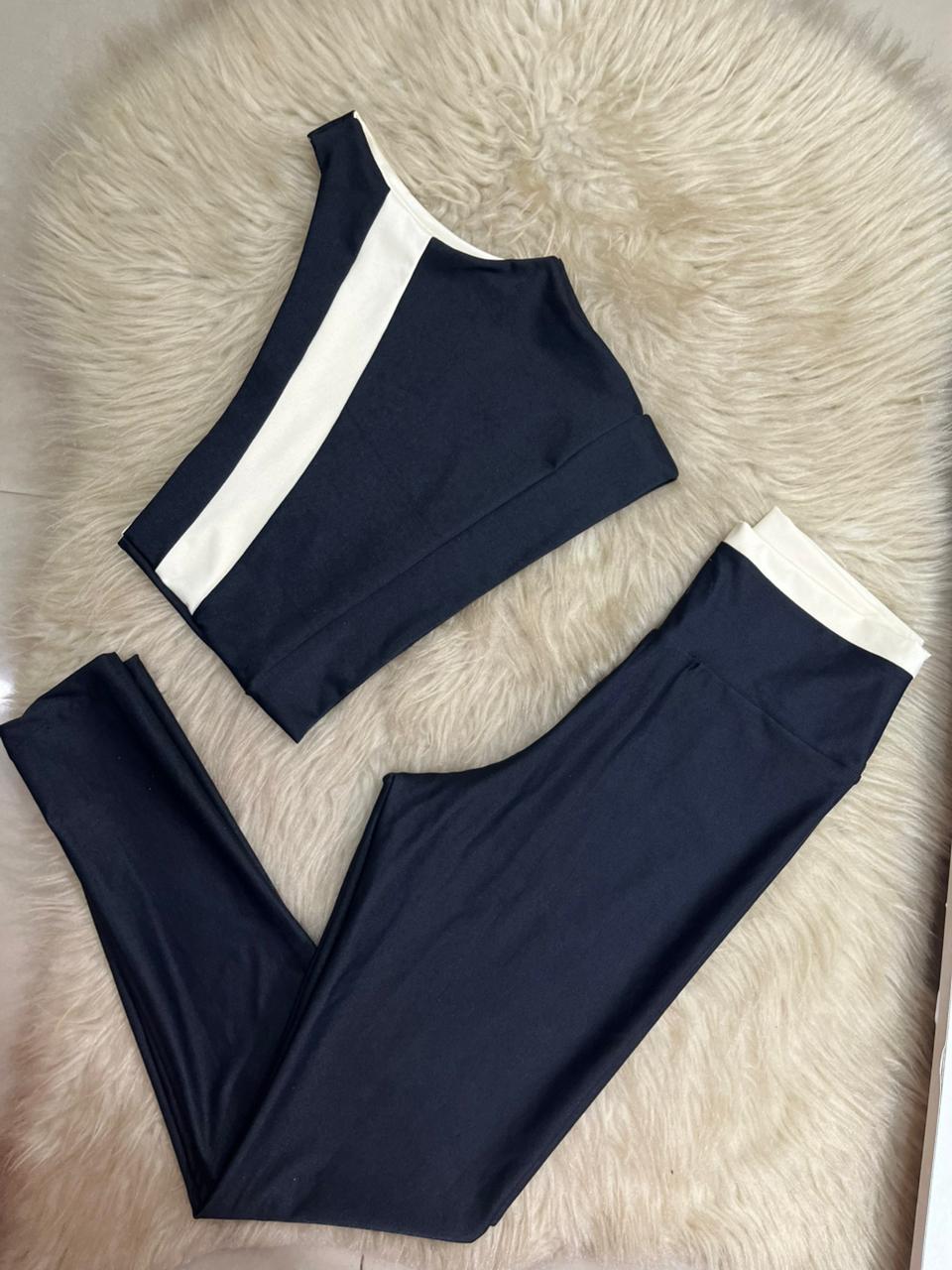 Conjunto Sofia Legging Canelado Poliamida+Top Cor Preto+Off