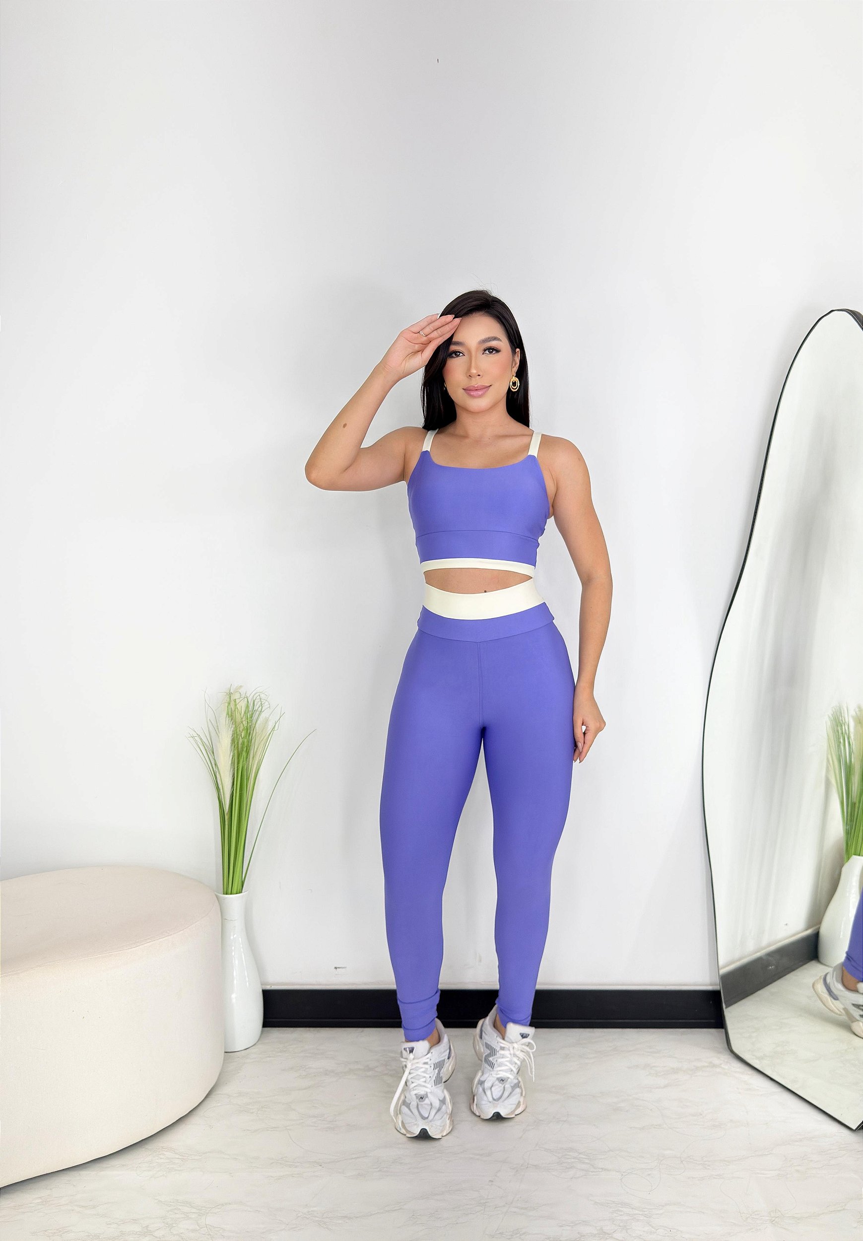 Conjunto Tamires Legging+ Top Bicolor Cor Lavanda+Off